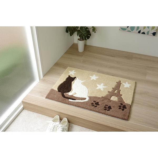 玄関マット おしゃれ ねこ柄 かわいい 肉球 足跡 黒猫 白猫 星空 猫